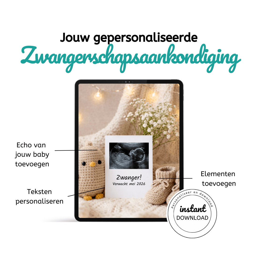 Combineer deze digitale zwangerschapsaankondiging met een vroege echo of geslachtsbepaling bij Pretecho&zo in Breda, Dordrecht of Oudenbosch.